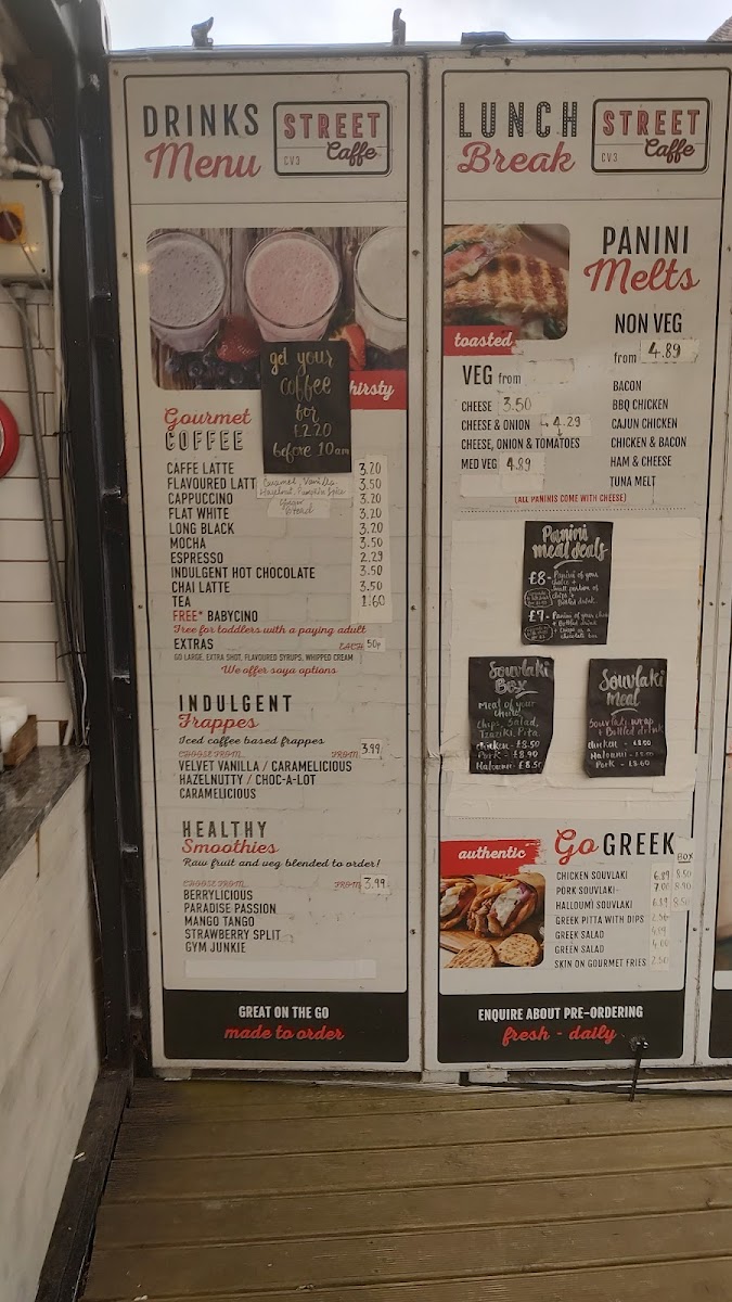 Welcome to Street Caffe, a delightful café nestled in Abbey Park, Coventry. This unique venue is all about crafting an unforgettable experience within a cozy shipping container setting. Street Caffe's menu boasts a stellar selection of gourmet coffee options, including classics like Flat White and indulgent Hot Chocolate, catering to every coffee lover's palate.